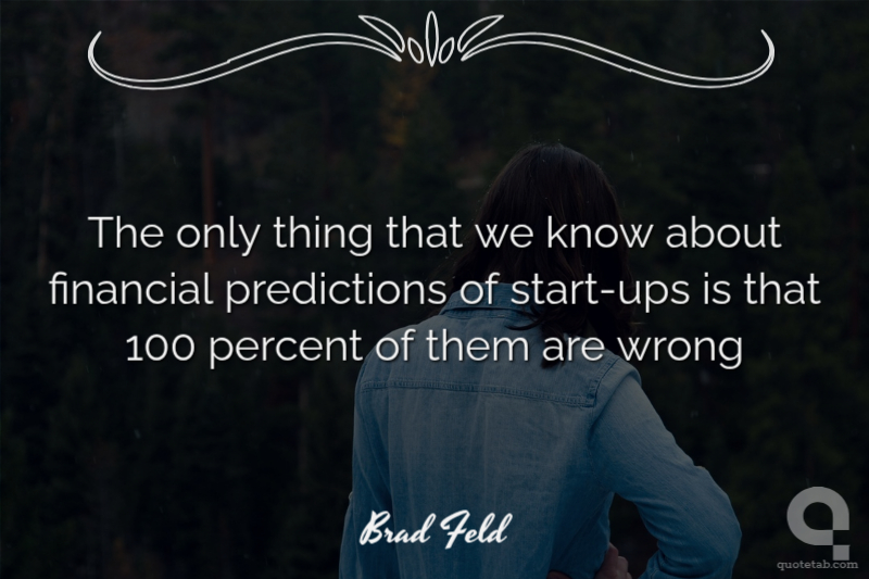 The only thing that we know about financial predictions of start-ups is that 100 percent of them are wrong Brad Feld
