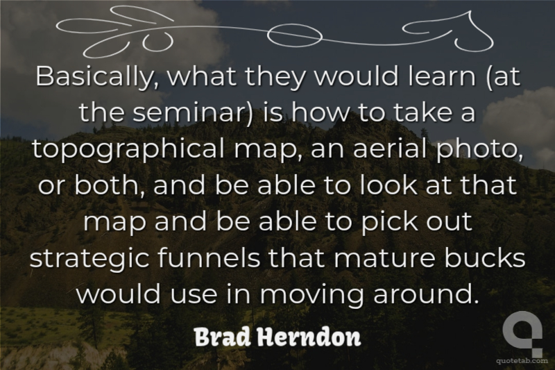 Basically, what they would learn (at the seminar) is how to take a topographical map, an aerial photo, or both, and be able to look at that map and be able to pick out strategic funnels that mature bucks would use in moving around. Brad Herndon