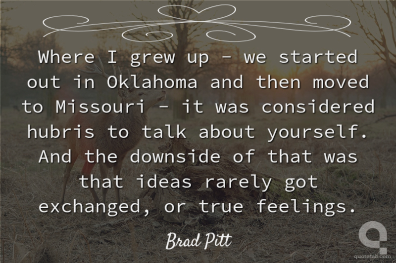 Where I grew up - we started out in Oklahoma and then moved to Missouri - it was considered hubris to talk about yourself. And the downside of that was that ideas rarely got exchanged, or true feelings. Brad Pitt