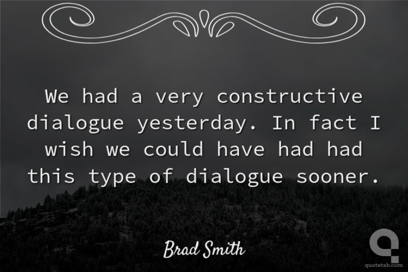 We had a very constructive dialogue yesterday. In fact I wish we could have had had this type of dialogue sooner. Brad Smith