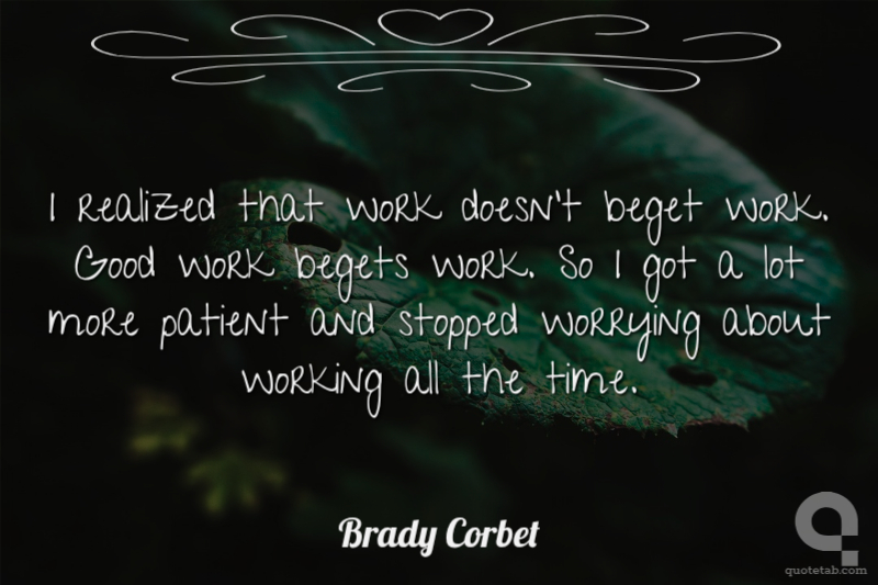 I realized that work doesn't beget work. Good work begets work. So I got a lot more patient and stopped worrying about working all the time. Brady Corbet