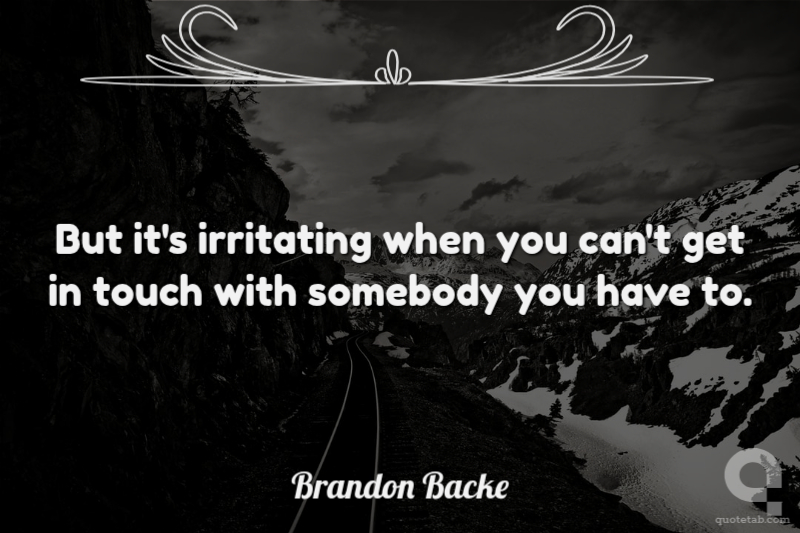 But it's irritating when you can't get in touch with somebody you have to. Brandon Backe