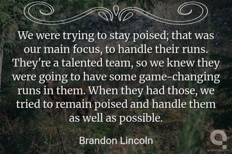 We were trying to stay poised; that was our main focus, to handle their runs. They're a talented team, so we knew they were going to have some game-changing runs in them. When they had those, we tried to remain poised and handle them as well as possible. Brandon Lincoln