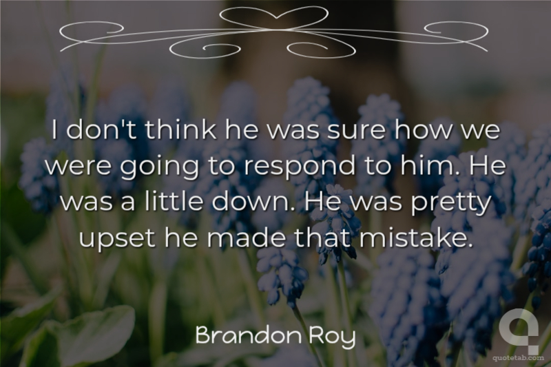 I don't think he was sure how we were going to respond to him. He was a little down. He was pretty upset he made that mistake. Brandon Roy