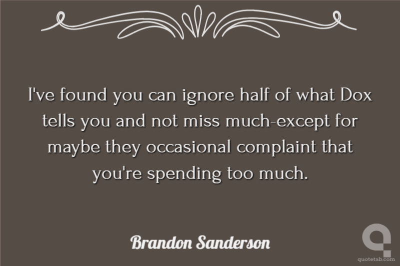 I've found you can ignore half of what Dox tells you and not miss much-except for maybe they occasional complaint that you're spending too much. Brandon Sanderson