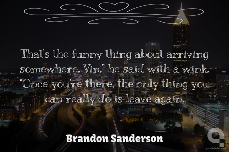 That’s the funny thing about arriving somewhere, Vin,” he said with a wink. “Once you’re there, the only thing you can really do is leave again. Brandon Sanderson