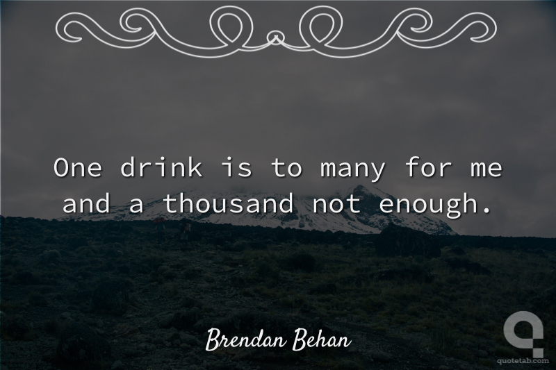 One drink is to many for me and a thousand not enough. Brendan Behan