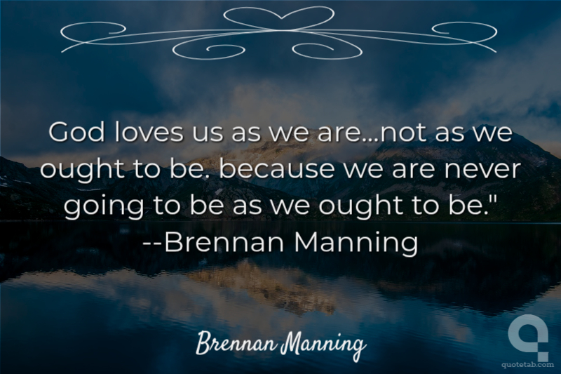God loves us as we are...not as we ought to be. because we are never going to be as we ought to be." --Brennan Manning Brennan Manning