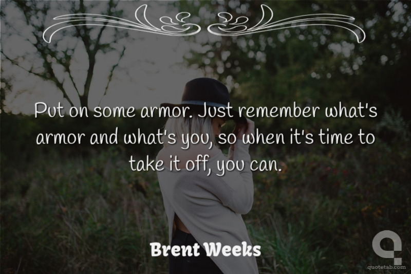 Put on some armor. Just remember what's armor and what's you, so when it's time to take it off, you can. Brent Weeks