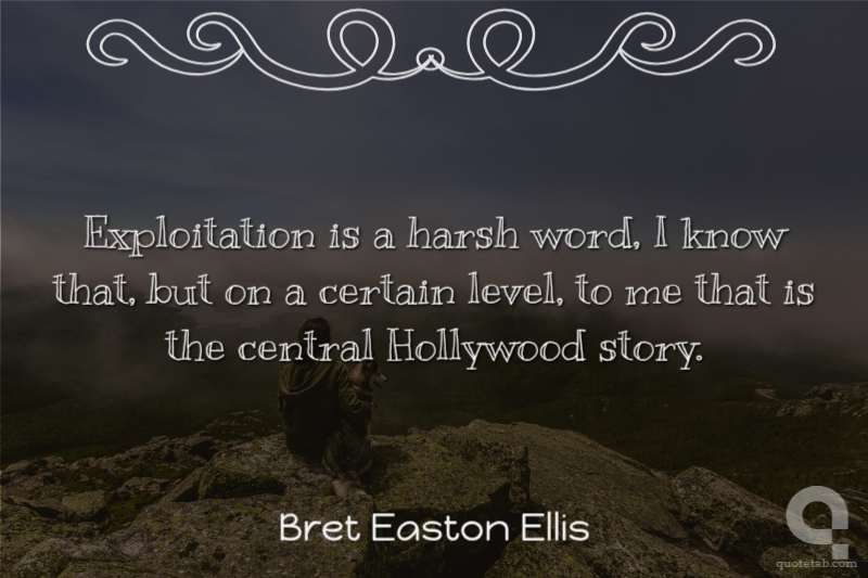 Exploitation is a harsh word, I know that, but on a certain level, to me that is the central Hollywood story. Bret Easton Ellis