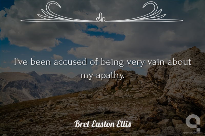 I've been accused of being very vain about my apathy. Bret Easton Ellis