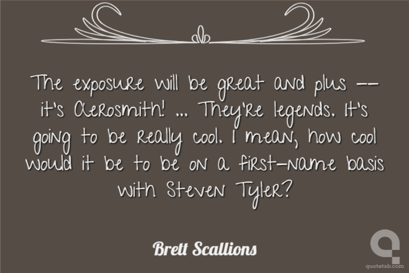 The exposure will be great and plus -- it's Aerosmith! ... They're legends. It's going to be really cool. I mean, how cool would it be to be on a first-name basis with Steven Tyler? Brett Scallions