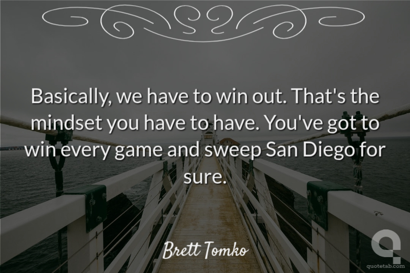 Basically, we have to win out. That's the mindset you have to have. You've got to win every game and sweep San Diego for sure. Brett Tomko