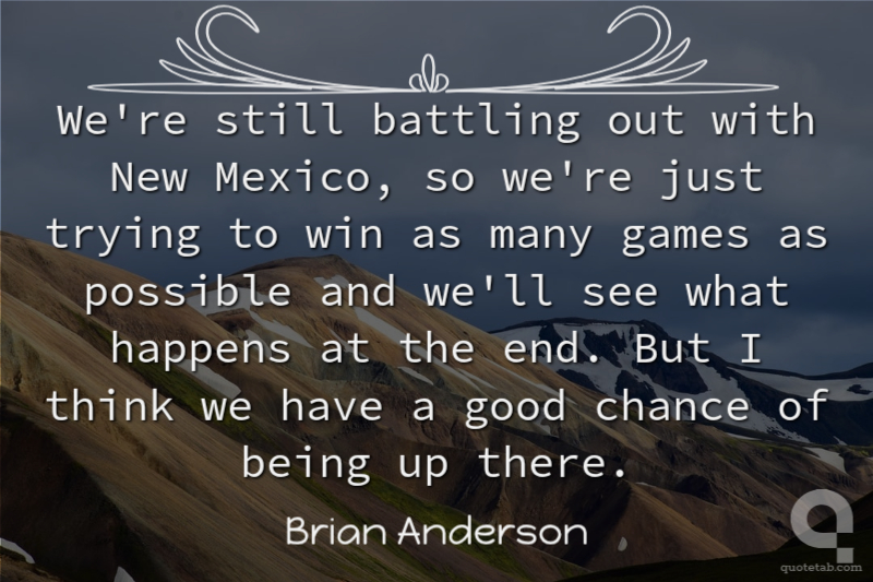 We're still battling out with New Mexico, so we're just trying to win as many games as possible and we'll see what happens at the end. But I think we have a good chance of being up there. Brian Anderson