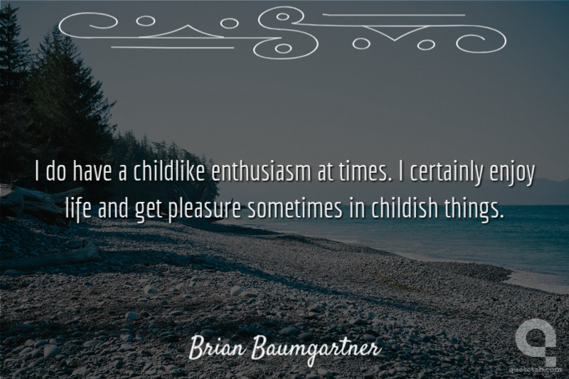 I do have a childlike enthusiasm at times. I certainly enjoy life and get pleasure sometimes in childish things. Brian Baumgartner