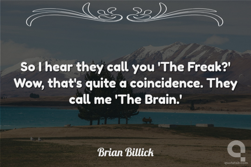 So I hear they call you 'The Freak?' Wow, that's quite a coincidence. They call me 'The Brain.' Brian Billick