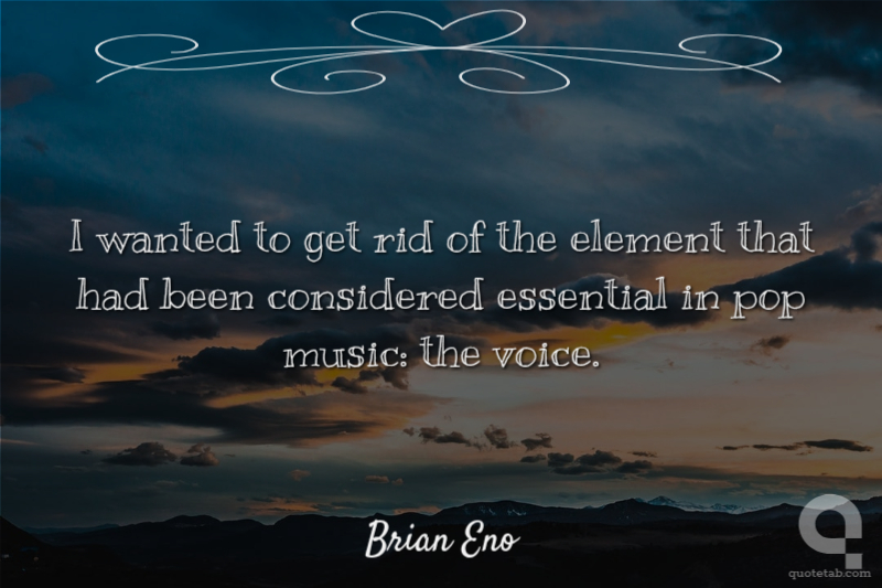 I wanted to get rid of the element that had been considered essential in pop music: the voice. Brian Eno