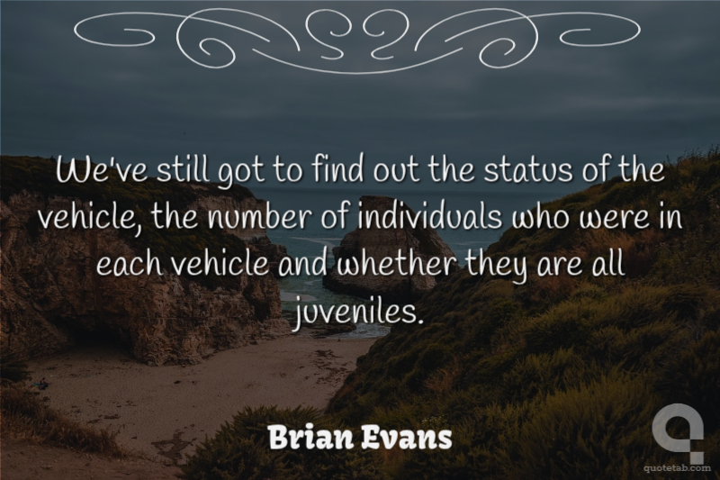 We've still got to find out the status of the vehicle, the number of individuals who were in each vehicle and whether they are all juveniles. Brian Evans