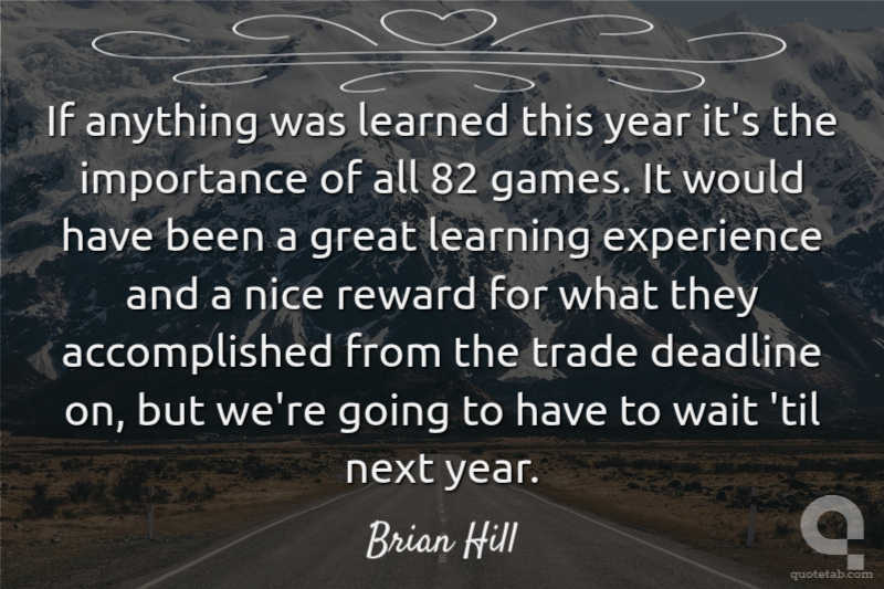 If anything was learned this year it's the importance of all 82 games. It would have been a great learning experience and a nice reward for what they accomplished from the trade deadline on, but we're going to have to wait 'til next year. Brian Hill