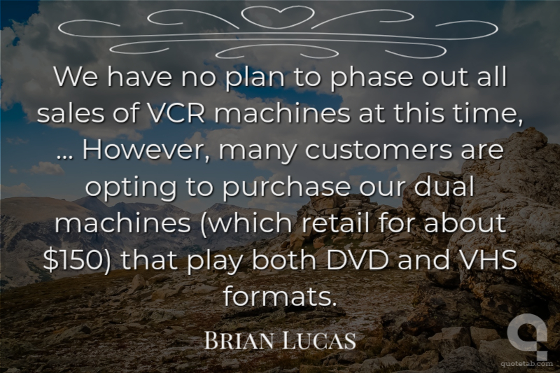 We have no plan to phase out all sales of VCR machines at this time, ... However, many customers are opting to purchase our dual machines (which retail for about $150) that play both DVD and VHS formats. Brian Lucas