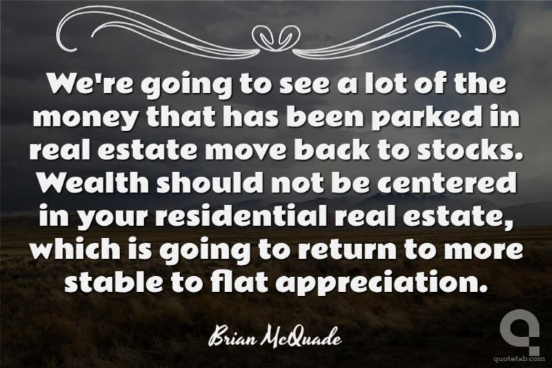 We're going to see a lot of the money that has been parked in real estate move back to stocks. Wealth should not be centered in your residential real estate, which is going to return to more stable to flat appreciation. Brian McQuade