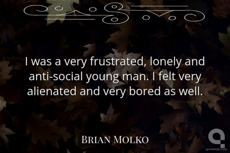 I was a very frustrated, lonely and anti-social young man. I felt very alienated and very bored as well. Brian Molko