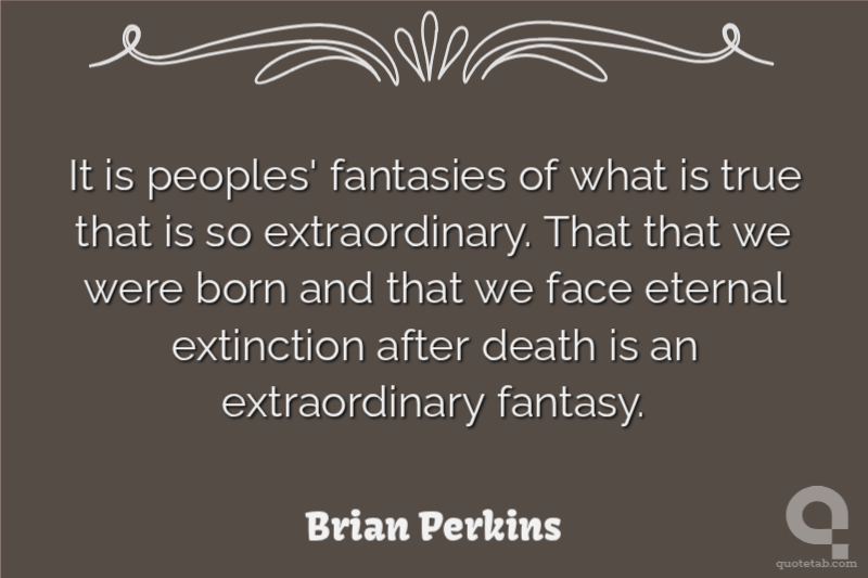It is peoples' fantasies of what is true that is so extraordinary. That that we were born and that we face eternal extinction after death is an extraordinary fantasy. Brian Perkins