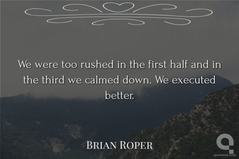 We were too rushed in the first half and in the third we calmed down. We executed better. Brian Roper
