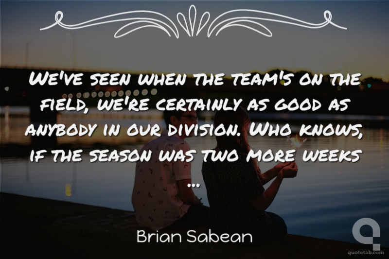 We've seen when the team's on the field, we're certainly as good as anybody in our division. Who knows, if the season was two more weeks ... Brian Sabean
