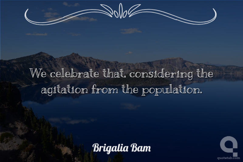 We celebrate that, considering the agitation from the population. Brigalia Bam