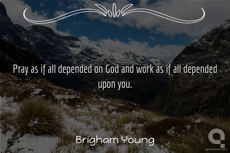 Pray as if all depended on God and work as if all depended upon you. Brigham Young