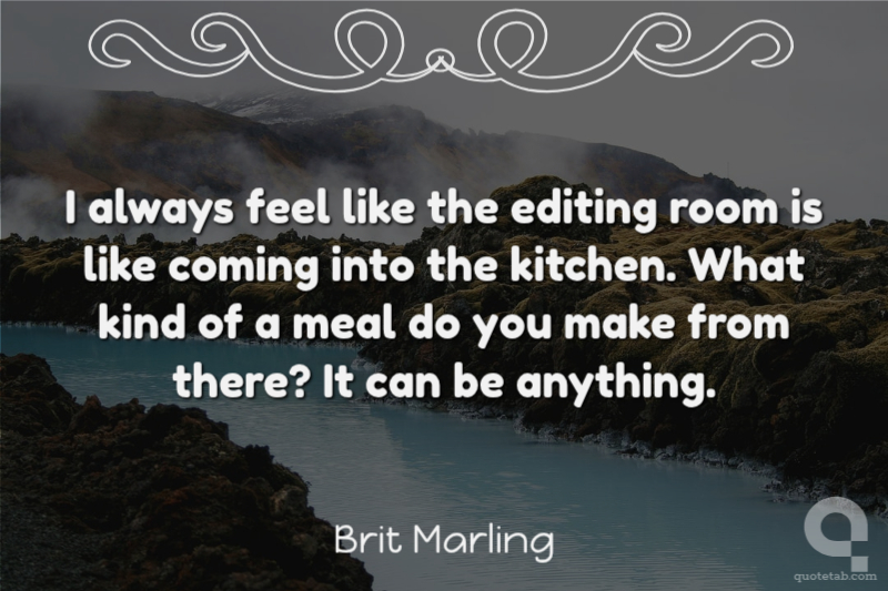 I always feel like the editing room is like coming into the kitchen. What kind of a meal do you make from there? It can be anything. Brit Marling
