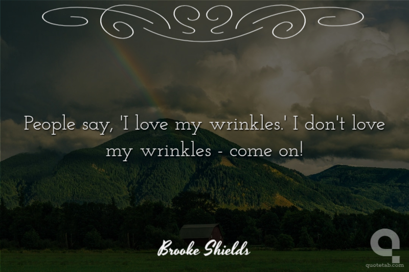 People say, 'I love my wrinkles.' I don't love my wrinkles - come on! Brooke Shields