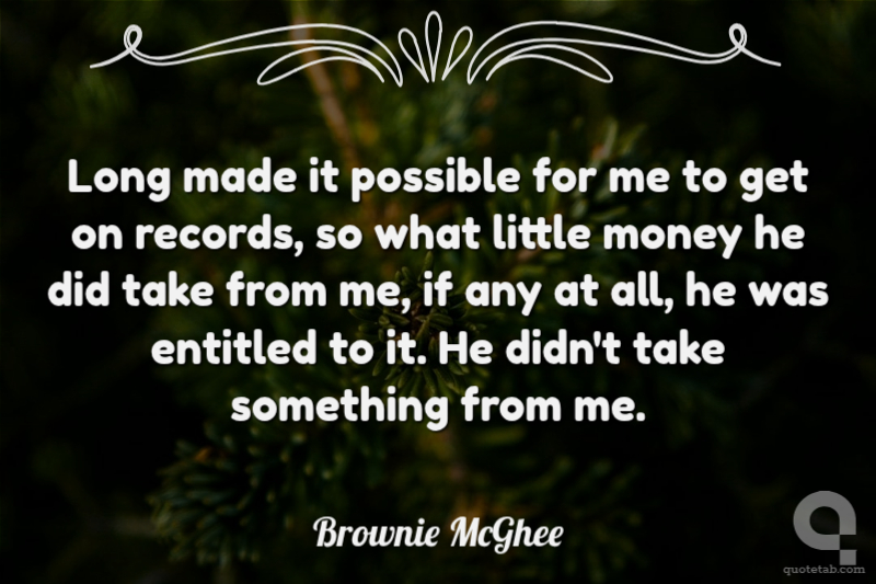 Long made it possible for me to get on records, so what little money he did take from me, if any at all, he was entitled to it. He didn't take something from me. Brownie McGhee