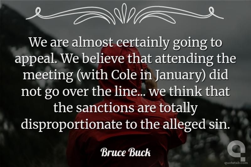 We are almost certainly going to appeal. We believe that attending the meeting (with Cole in January) did not go over the line... we think that the sanctions are totally disproportionate to the alleged sin. Bruce Buck