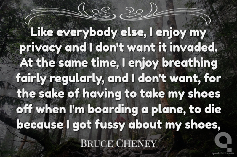 Like everybody else, I enjoy my privacy and I don't want it invaded. At the same time, I enjoy breathing fairly regularly, and I don't want, for the sake of having to take my shoes off when I'm boarding a plane, to die because I got fussy about my shoes, Bruce Cheney