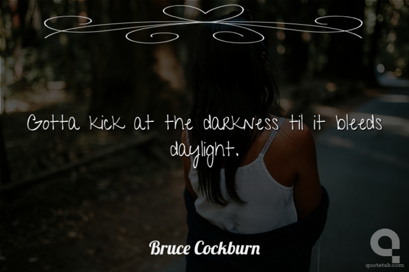 Gotta kick at the darkness til it bleeds daylight. Bruce Cockburn