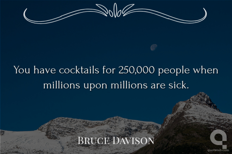 You have cocktails for 250,000 people when millions upon millions are sick. Bruce Davison