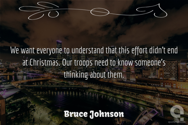 We want everyone to understand that this effort didn't end at Christmas. Our troops need to know someone's thinking about them. Bruce Johnson