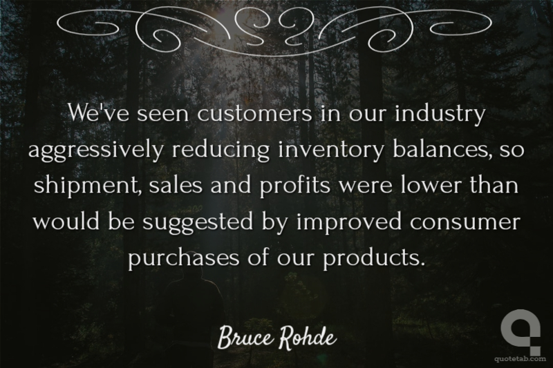 We've seen customers in our industry aggressively reducing inventory balances, so shipment, sales and profits were lower than would be suggested by improved consumer purchases of our products. Bruce Rohde