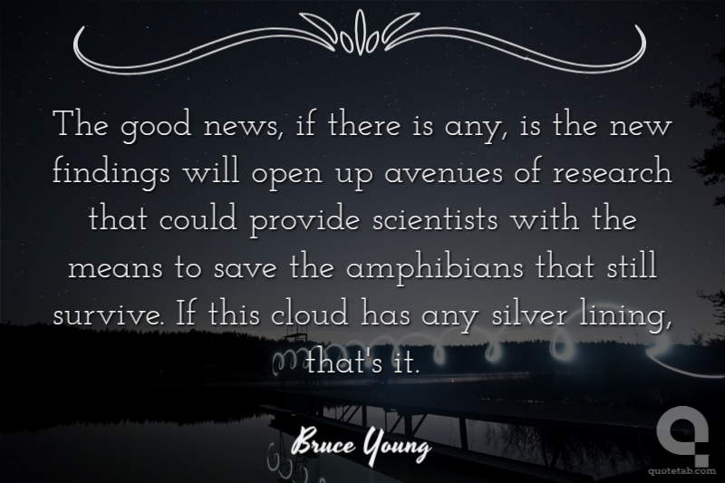 The good news, if there is any, is the new findings will open up avenues of research that could provide scientists with the means to save the amphibians that still survive. If this cloud has any silver lining, that's it. Bruce Young