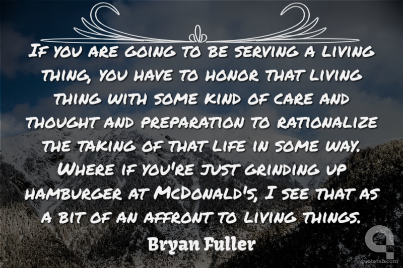 If you are going to be serving a living thing, you have to honor that living thing with some kind of care and thought and preparation to rationalize the taking of that life in some way. Where if you're just grinding up hamburger at McDonald's, I see that as a bit of an affront to living things. Bryan Fuller