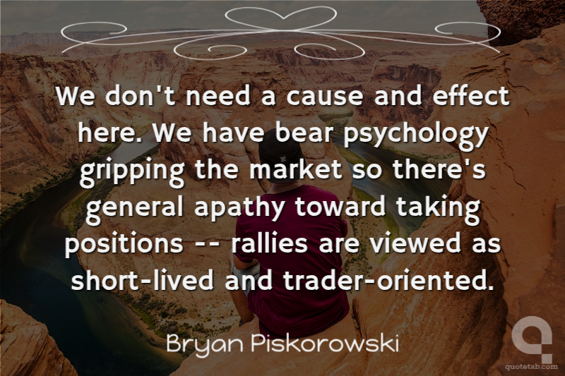 We don't need a cause and effect here. We have bear psychology gripping the market so there's general apathy toward taking positions -- rallies are viewed as short-lived and trader-oriented. Bryan Piskorowski