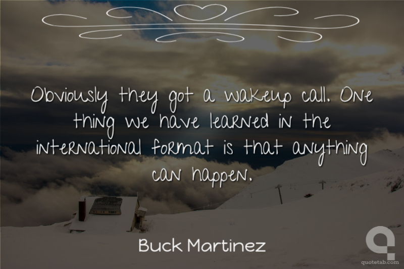 Obviously they got a wakeup call. One thing we have learned in the international format is that anything can happen. Buck Martinez