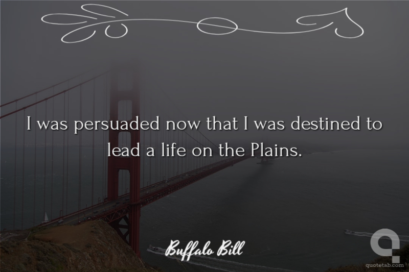 I was persuaded now that I was destined to lead a life on the Plains. Buffalo Bill