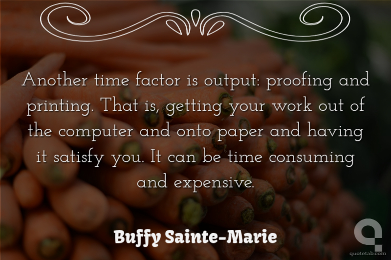 Another time factor is output: proofing and printing. That is, getting your work out of the computer and onto paper and having it satisfy you. It can be time consuming and expensive. Buffy Sainte-Marie