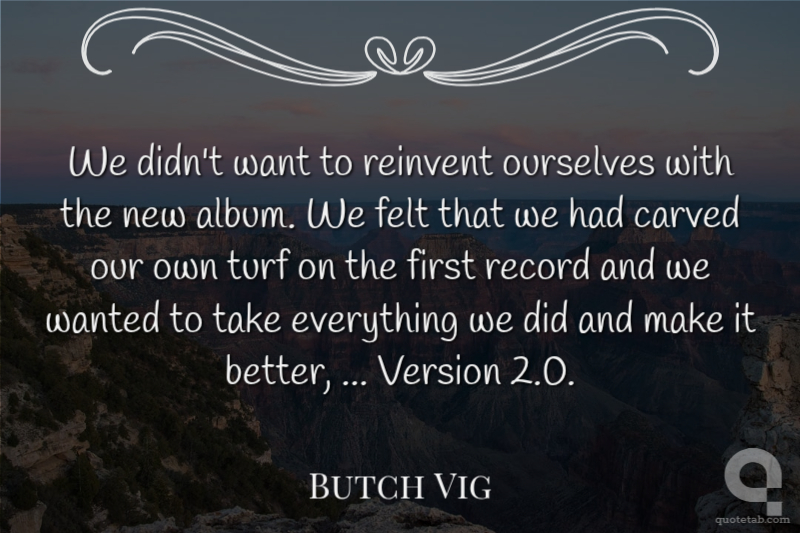 We didn't want to reinvent ourselves with the new album. We felt that we had carved our own turf on the first record and we wanted to take everything we did and make it better, ... Version 2.0. Butch Vig