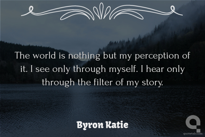 The world is nothing but my perception of it. I see only through myself. I hear only through the filter of my story. Byron Katie