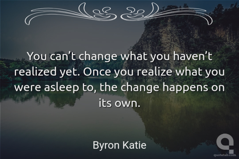 You can’t change what you haven’t realized yet. Once you realize what you were asleep to, the change happens on its own. Byron Katie