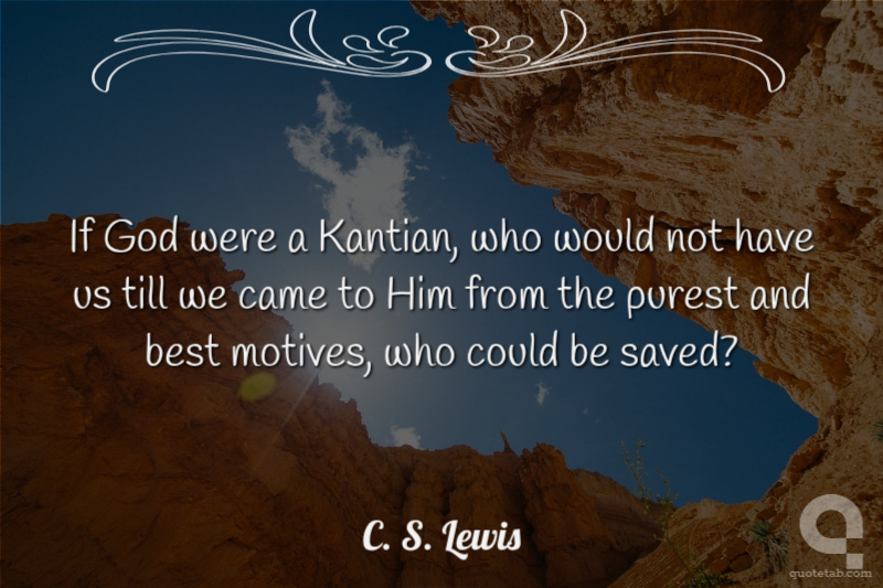 If God were a Kantian, who would not have us till we came to Him from the purest and best motives, who could be saved? C. S. Lewis